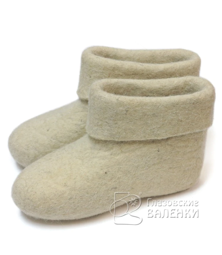 Полуваленки (чуни) сваляны вручную из овечьей шерсти без применения красителей и кислот. Хорошо простираны, плотно прокатаны, поэтому отлично держат тепло, не дают усадки при намокании.