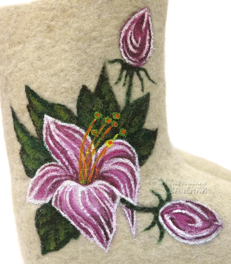 Полуваленки (чуни) сваляны вручную из овечьей шерсти без применения красителей и кислот. Хорошо простираны, плотно прокатаны, поэтому отлично держат тепло, не дают усадки при намокании.