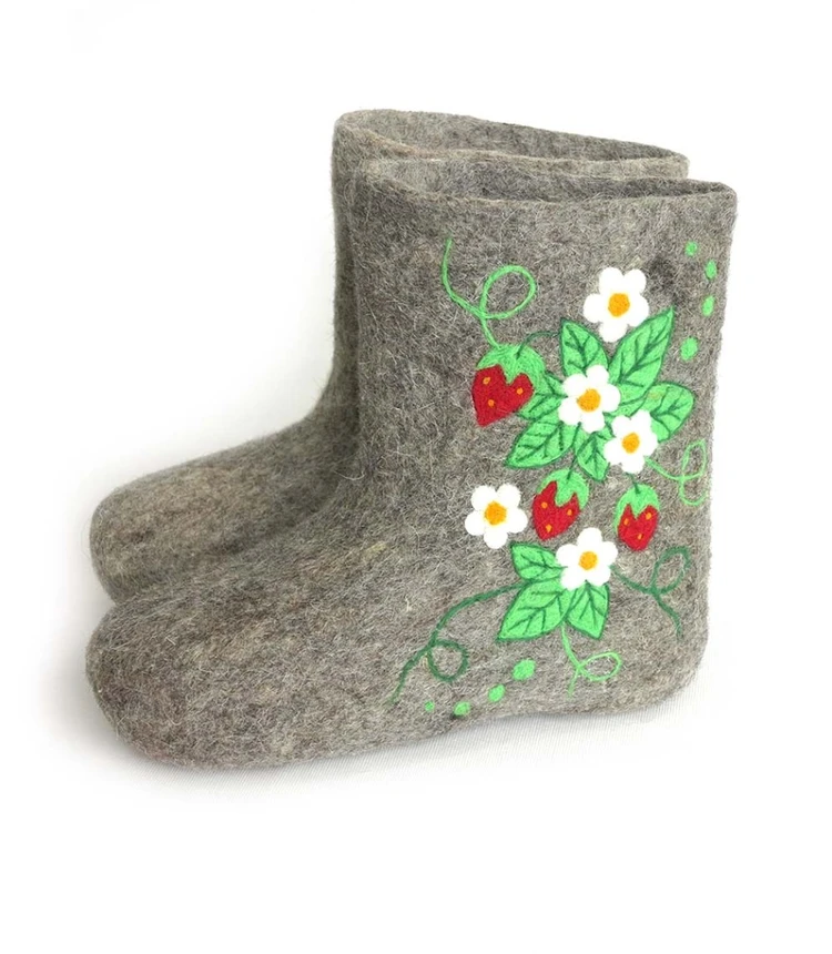 Полуваленки (чуни) сваляны вручную из овечьей шерсти без применения красителей и кислот. Хорошо простираны, плотно прокатаны, поэтому отлично держат тепло, не дают усадки при намокании.