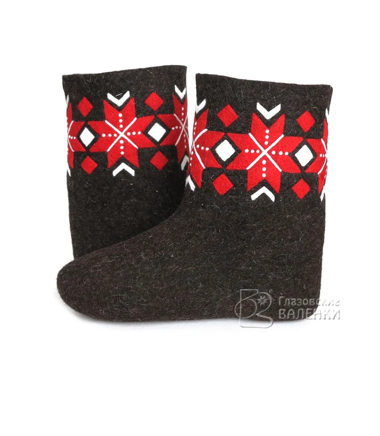 Полуваленки (чуни) сваляны вручную из овечьей шерсти без применения красителей и кислот. Хорошо простираны, плотно прокатаны, поэтому отлично держат тепло, не дают усадки при намокании.