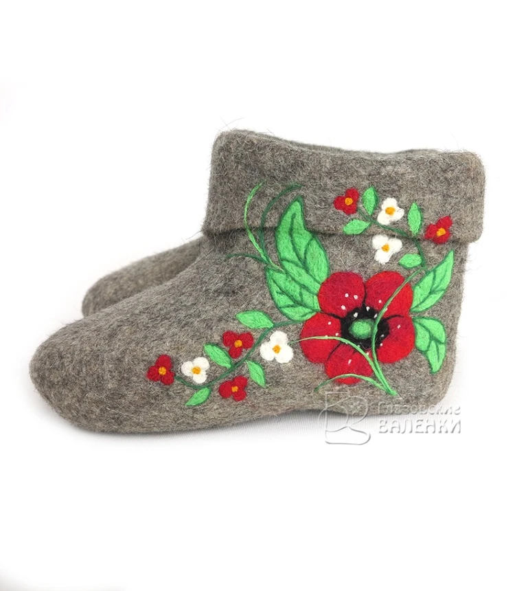 Полуваленки (чуни) сваляны вручную из овечьей шерсти без применения красителей и кислот. Хорошо простираны, плотно прокатаны, поэтому отлично держат тепло, не дают усадки при намокании.