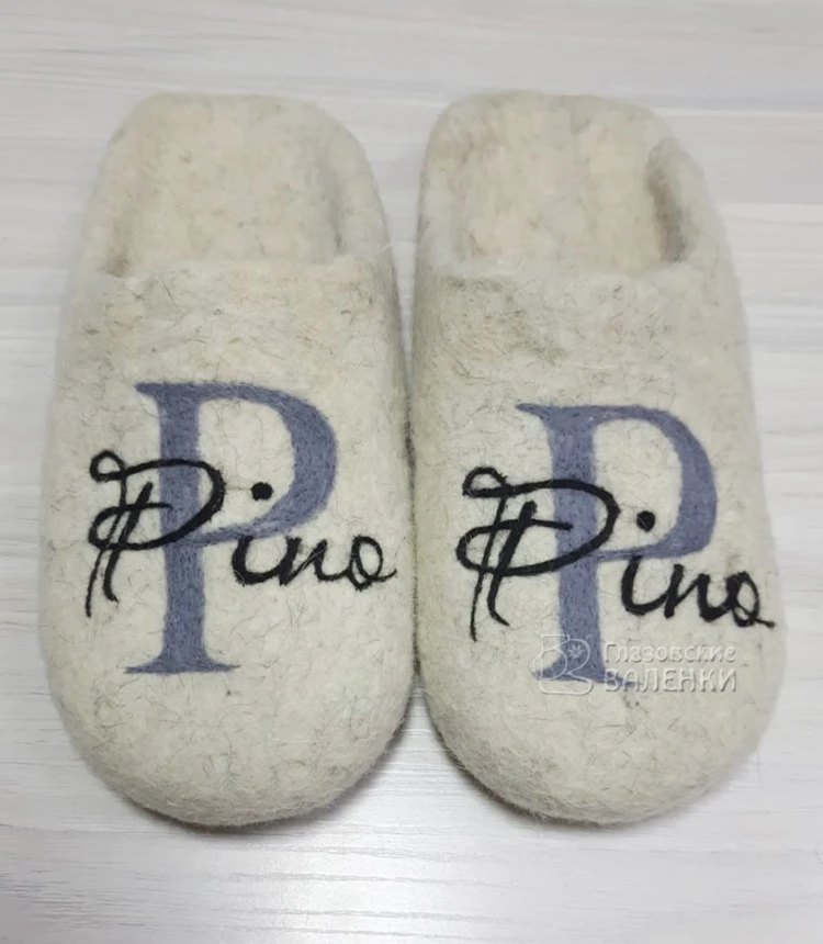 По Вашим эскизам сделаем рисунок или логотип на тапочках. Цена, способ нанесения рисунка (сухое валяние, роспись акриловой краской, вышивка на машине), сроки изготовления обсуждаются индивидуально. Напишите в комментариях к заказу цвет тапочек, форму (с открытой или закрытой пяткой) и пожелания к рисунку. Мы свяжемся с Вами для уточнения деталей.