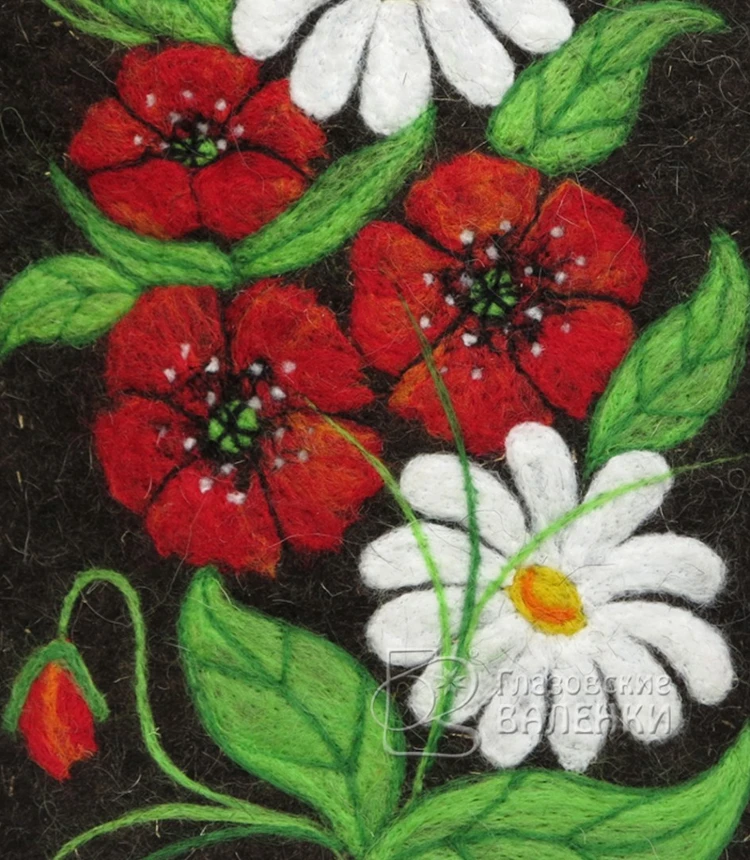 Рисунок выполнен в технике сухого валяния – фелтинг. Цветная шерсть вручную приваливается к войлоку специальными иглами.