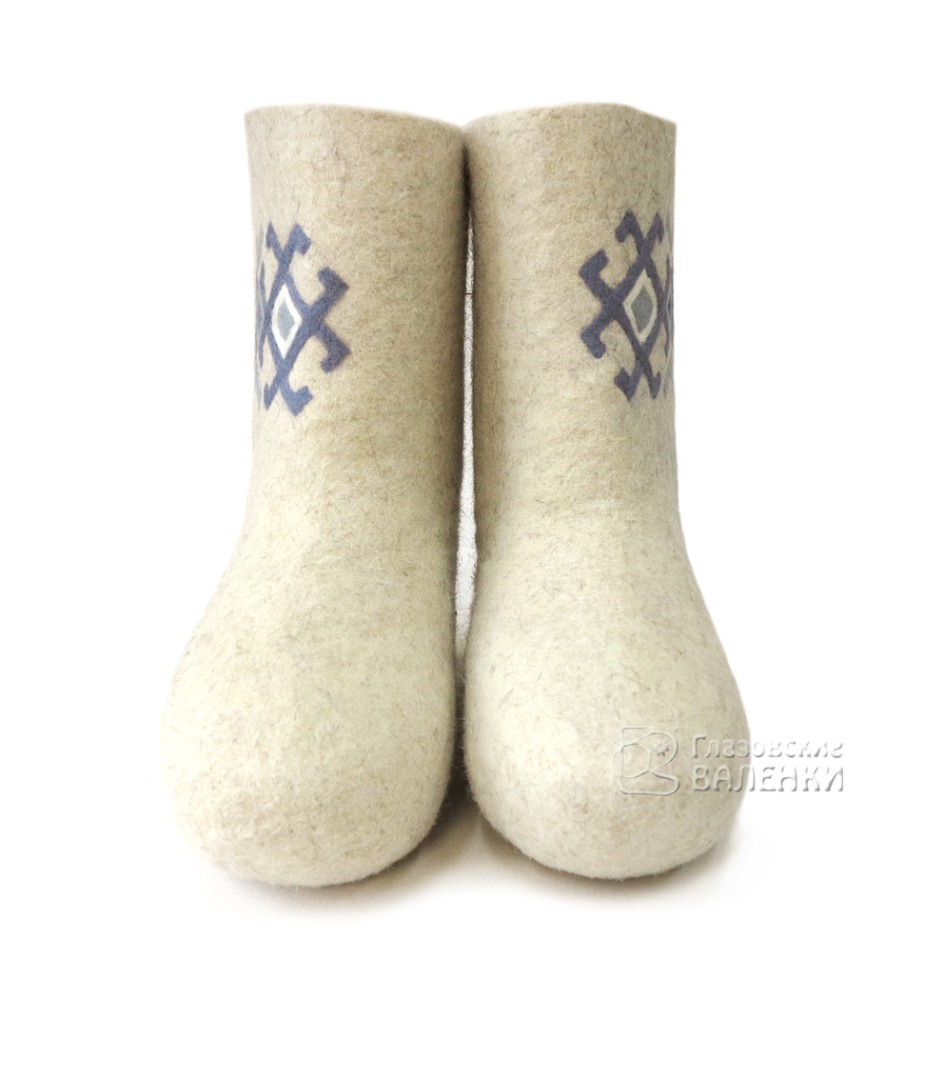 Полуваленки (чуни) сваляны вручную из овечьей шерсти без применения красителей и кислот. Хорошо простираны, плотно прокатаны, поэтому отлично держат тепло, не дают усадки при намокании.