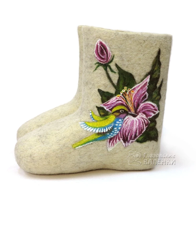 Полуваленки (чуни) сваляны вручную из овечьей шерсти без применения красителей и кислот. Хорошо простираны, плотно прокатаны, поэтому отлично держат тепло, не дают усадки при намокании.