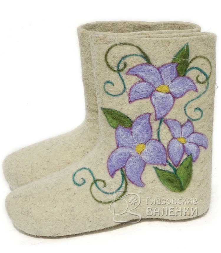 Полуваленки (чуни) сваляны вручную из овечьей шерсти без применения красителей и кислот. Хорошо простираны, плотно прокатаны, поэтому отлично держат тепло, не дают усадки при намокании.