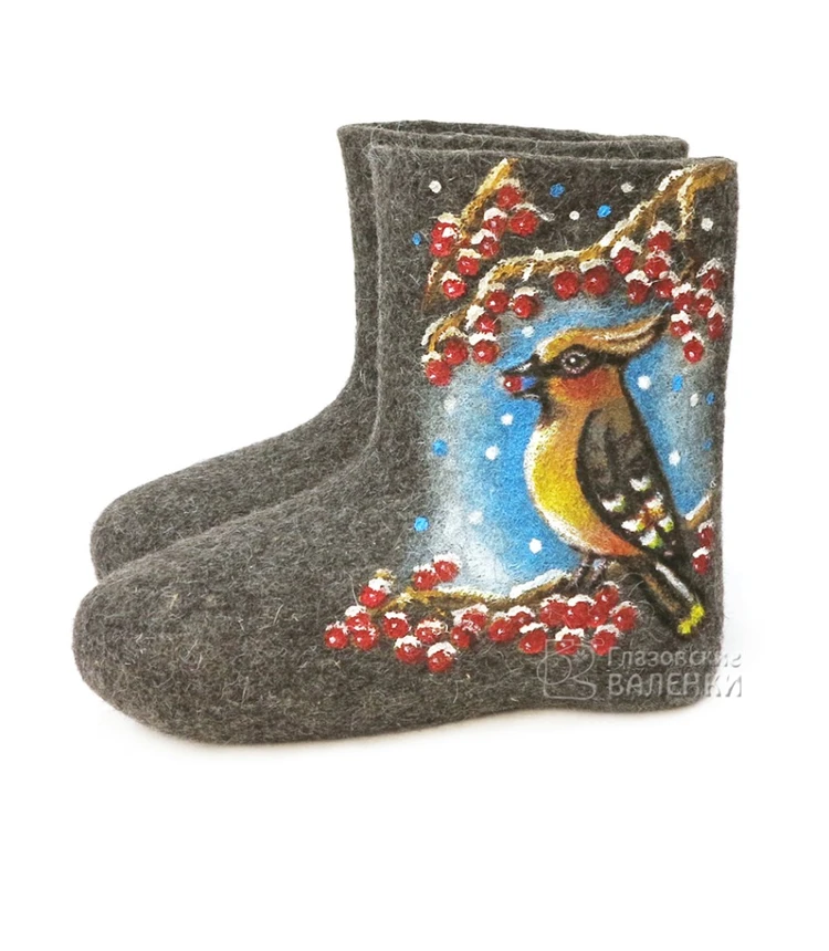 Полуваленки (чуни) сваляны вручную из овечьей шерсти без применения красителей и кислот. Хорошо простираны, плотно прокатаны, поэтому отлично держат тепло, не дают усадки при намокании.