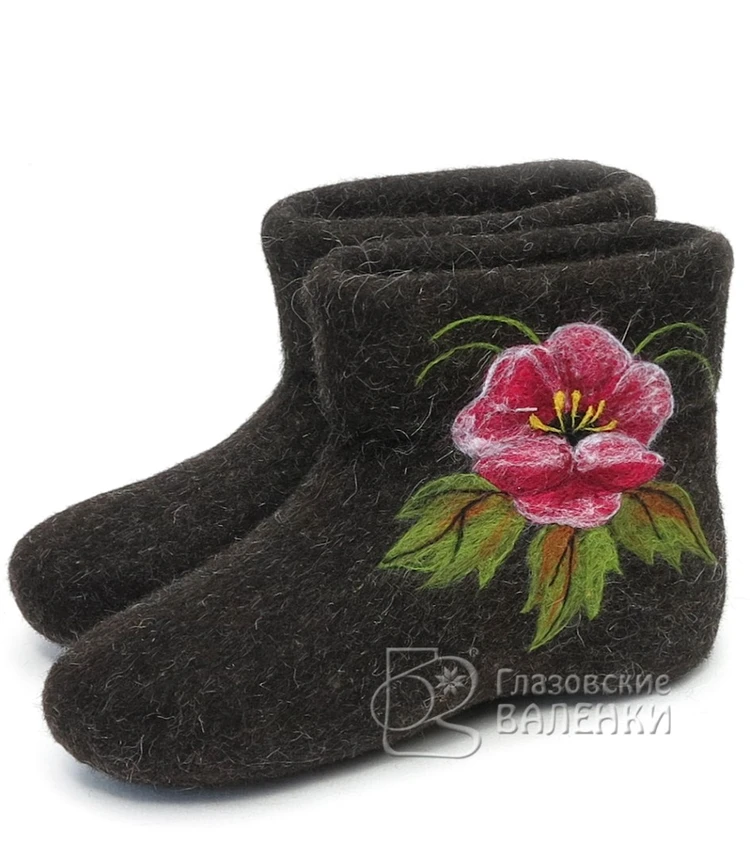 Полуваленки (чуни) сваляны вручную из овечьей шерсти без применения красителей и кислот. Хорошо простираны, плотно прокатаны, поэтому отлично держат тепло, не дают усадки при намокании.