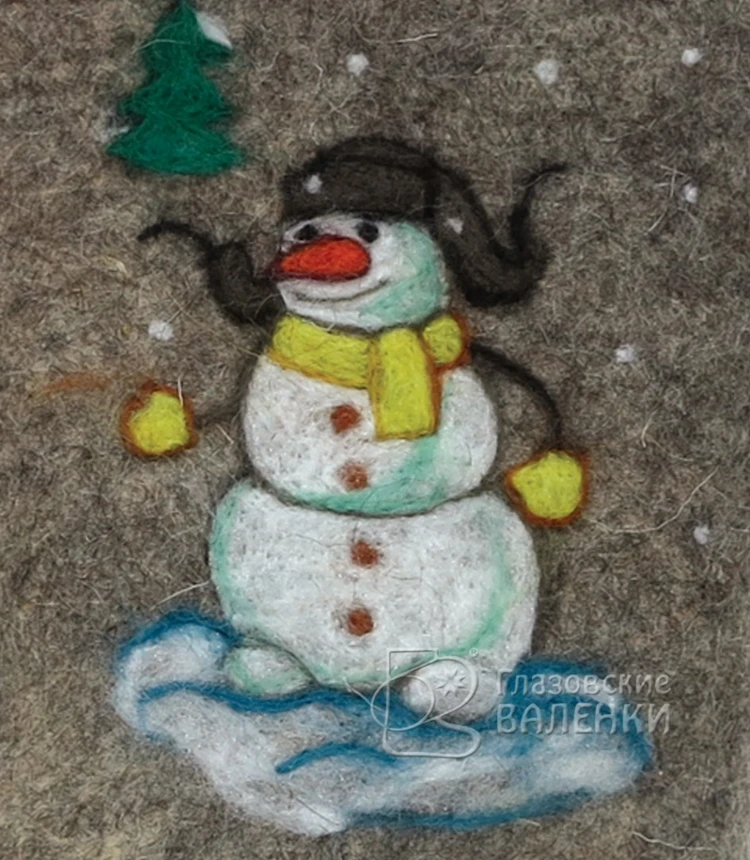 Рисунок выполнен в технике сухого валяния – фелтинг. Цветная шерсть вручную приваливается к войлоку специальными иглами.