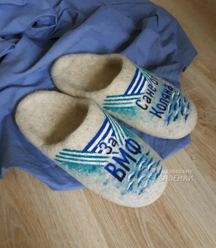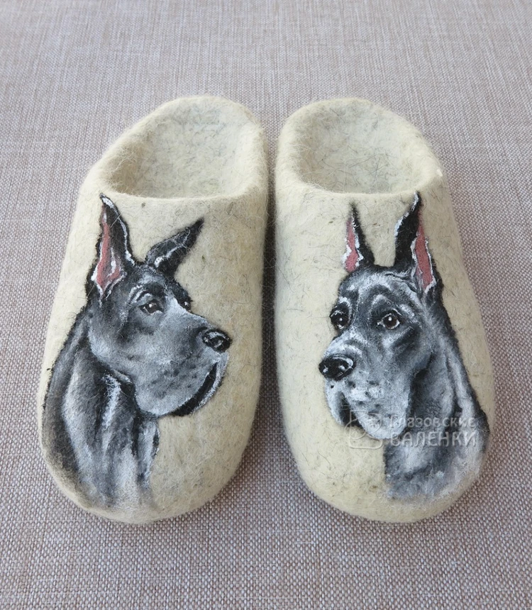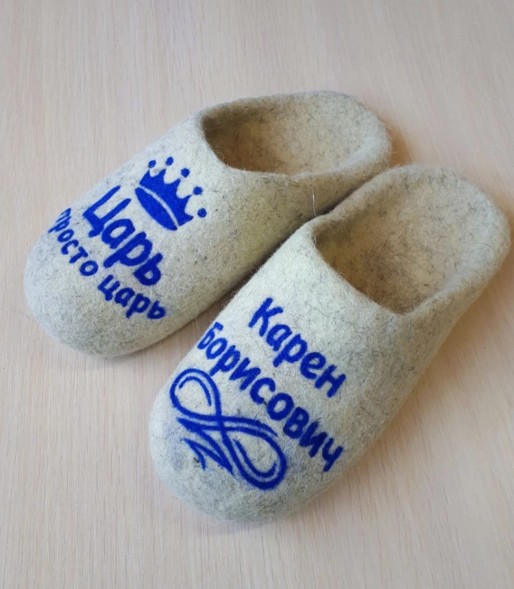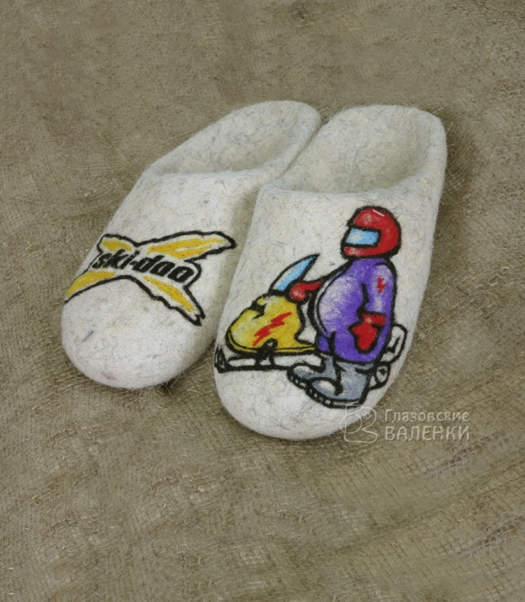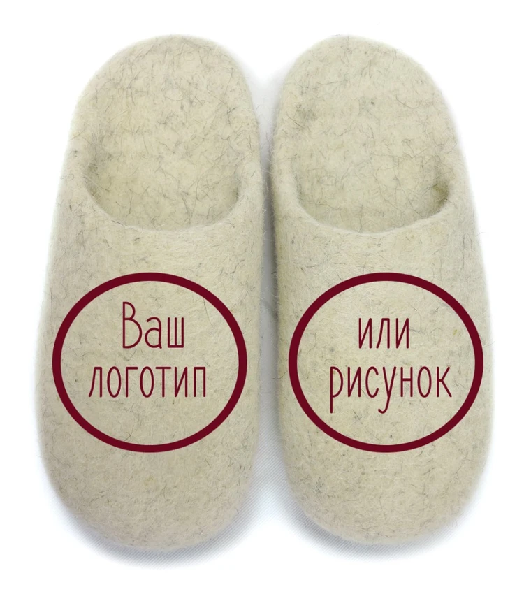 По Вашим эскизам сделаем рисунок или логотип на тапочках. Цена, способ нанесения рисунка (сухое валяние, роспись акриловой краской, вышивка на машине), сроки изготовления обсуждаются индивидуально. Напишите в комментариях к заказу цвет тапочек, форму (с открытой или закрытой пяткой) и пожелания к рисунку. Мы свяжемся с Вами для уточнения деталей.