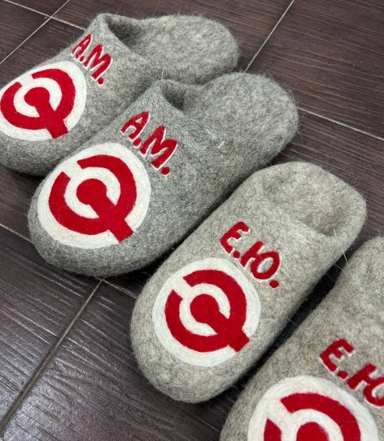 По Вашим эскизам сделаем рисунок или логотип на тапочках. Цена, способ нанесения рисунка (сухое валяние, роспись акриловой краской, вышивка на машине), сроки изготовления обсуждаются индивидуально. Напишите в комментариях к заказу цвет тапочек, форму (с открытой или закрытой пяткой) и пожелания к рисунку. Мы свяжемся с Вами для уточнения деталей.