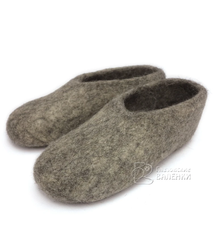 Тапочки сваляны вручную из овечьей шерсти без применения красителей и кислот. Наши валенки хорошо простираны, плотно прокатаны, на утолщенной подошве, поэтому они хорошо держат тепло, не дают усадки при намокании.