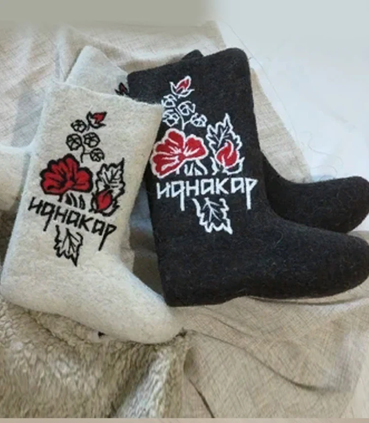 Наши валенки сваляны вручную из овечьей шерсти без применения красителей и кислот. Хорошо простираны, плотно прокатаны, на утолщенной подошве, поэтому они хорошо держат тепло, не дают усадки при намокании.